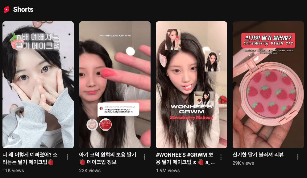 또한, 아일릿의 원희와 민스코, 포니 등 인플루언서 사이에서 #인간딸기, #토끼상과 #뽀용 메이크업 키워드와 함께